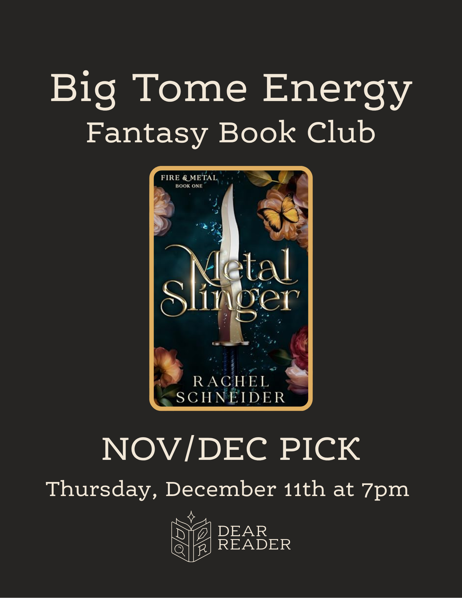 Join us at our next meeting for Big Tome Energy, Dear Reader's own fantasy book club. Each month, we will read a different fantasy, romantasy or science fiction book then meet at the bookstore to discuss over bites and bevvies with bookish friends!
