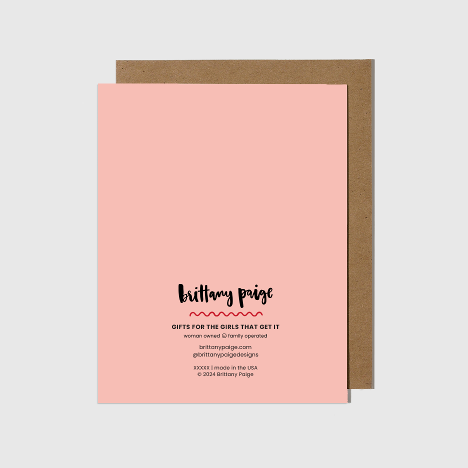 This card includes a removable 2.75” decal sticker. Card is A2 size (4 1/4" x 5 1/2"). Blank inside. Comes with kraft brown envelope. Printed on High Quality Paper